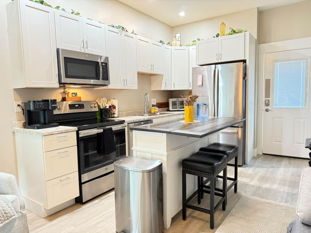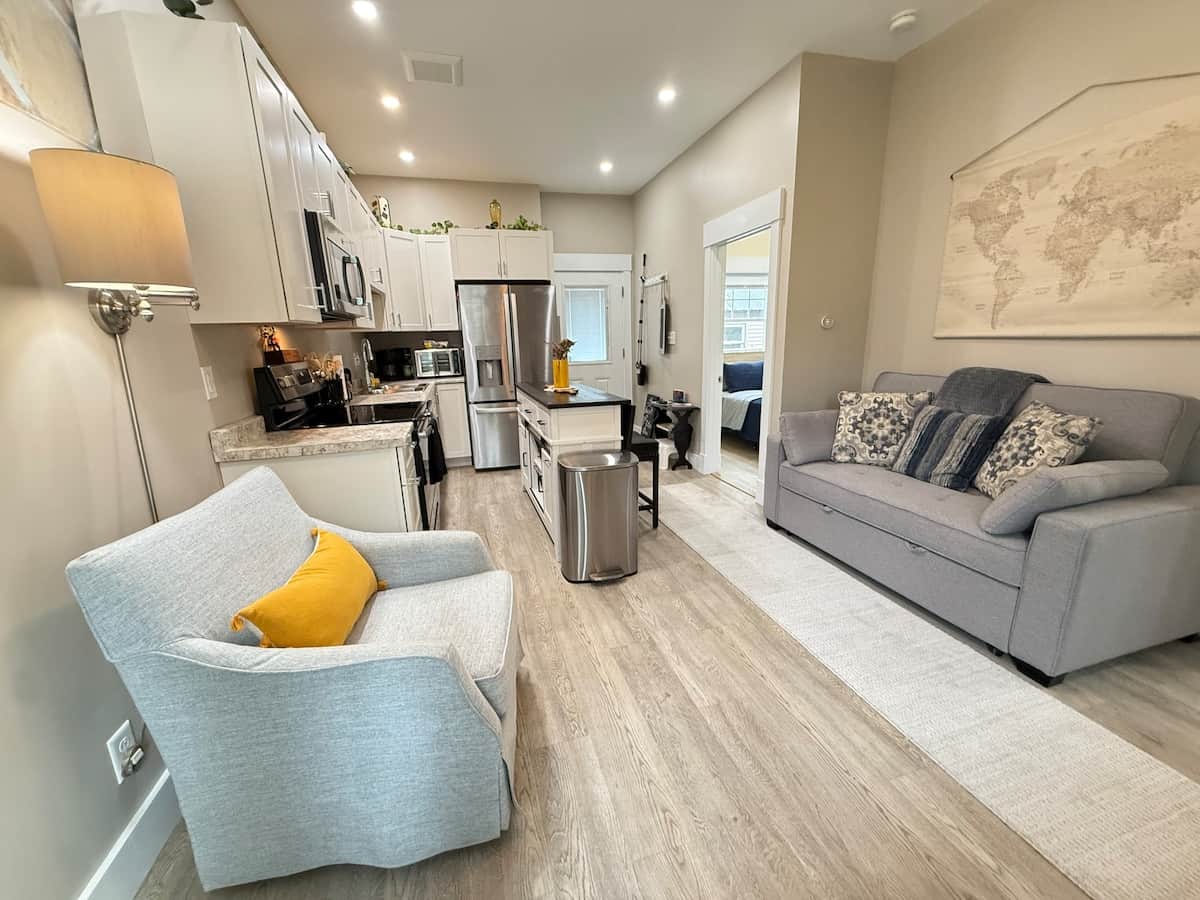 This modern, charming two-bedroom apartment has everything you'll need for a comfortable stay. We use comforts like 1000-thread-count Egyptian cotton sheets, ensuring a great night's sleep. Cleanliness and comfort are our top priorities. Enjoy your stay in this stylish first-floor apartment, which features a spacious bathroom equipped with a full-size laundry and walk-in shower that's stocked with essentials just in case. We’re confident you’ll have a fantastic experience. Enjoy!
